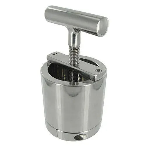Take control with the Master Series Ball Press Chamber, a unique and innovative device designed for those who enjoy exploring the boundaries of sensation and discipline. Constructed from heavy-duty stainless steel, this ball press chamber ensures durability and a luxurious feel during use.