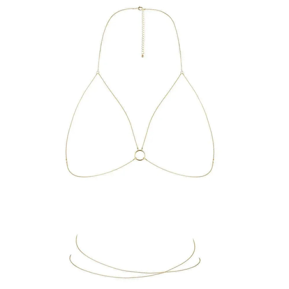 The Magnifique Bra Chain features a flexible and adjustable design that ensures a perfect fit for any body type. Its 100% adjustable clasp allows you to customize the fit around your neck and waist, making it ideal for any occasion. The small, delicate chains embrace the body, accentuating your most sensual areas, from your chest to your waist. Whether you're wearing it to a special event or adding a little spice to your everyday look, it is sure to turn heads.