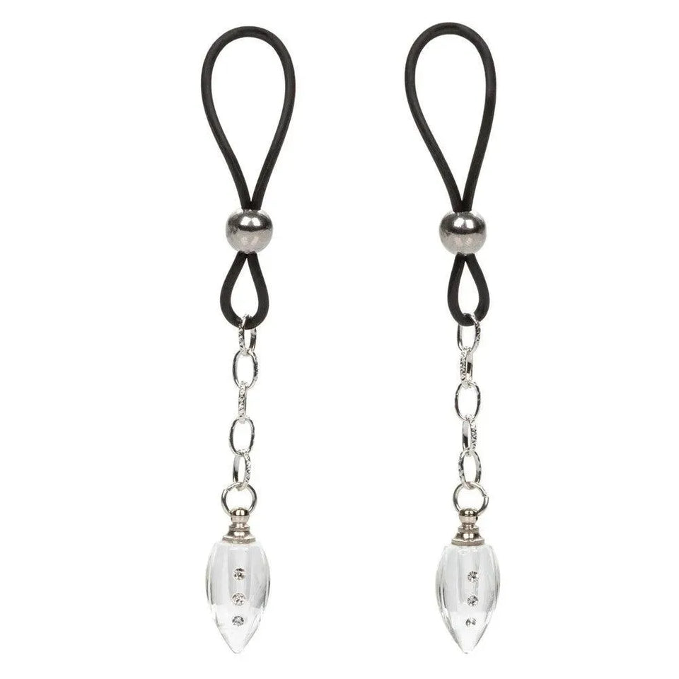 Add a touch of glamour and stimulation to your play with the CalExotics Nipple Play – Crystal Teardrop Nipple Jewellery. Designed to enhance your nipple play experience, this set includes two fully adjustable adornments that offer both aesthetic beauty and heightened sensations.