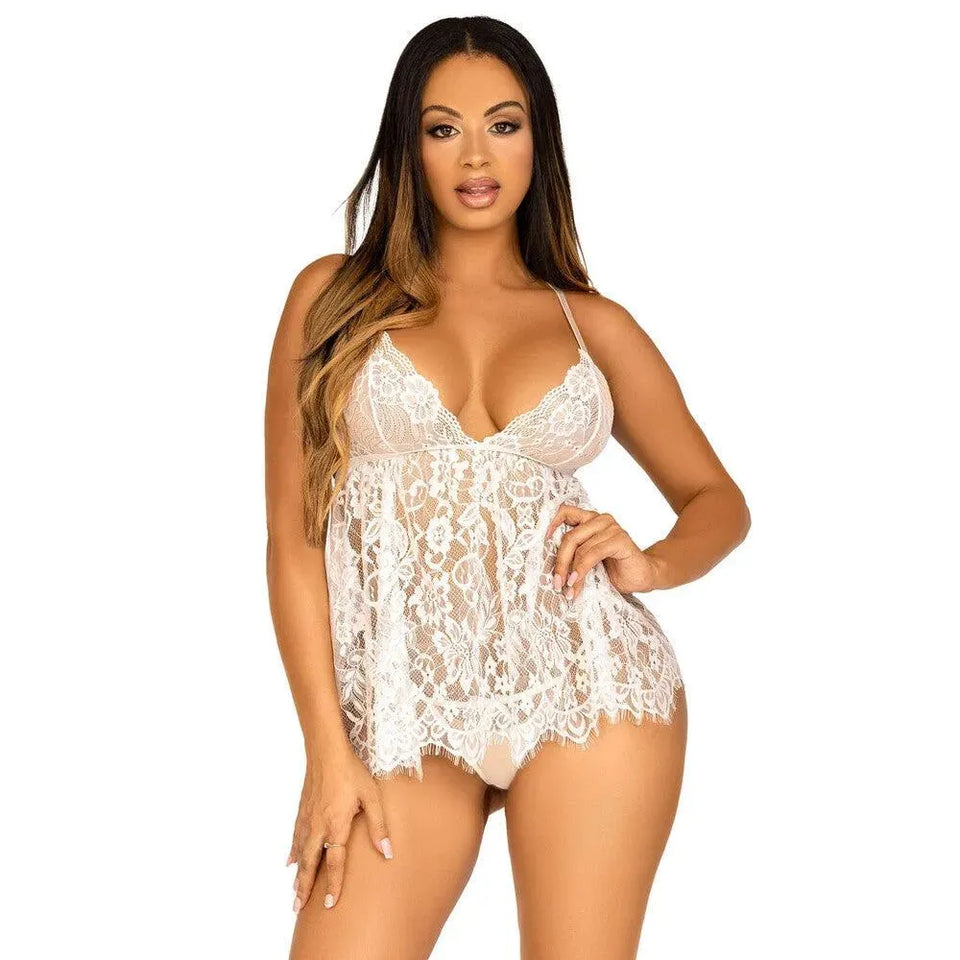 Leg Avenue Lace Babydoll & G-String - Floral Design, Adjustable Straps & Scalloped Hem