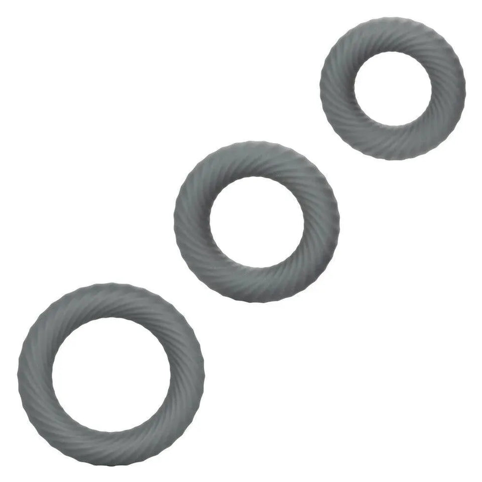 These spiral-textured rings provide a firm yet flexible grip, which not only supports longer-lasting performance but also delivers a unique tactile experience that will enhance every movement. Whether you're experimenting alone or with a partner, this set offers endless possibilities for elevated experiences. Designed to be easily cleaned with hot soapy water or toy cleaner, these rings are a durable and discreet addition to your bedroom essentials.