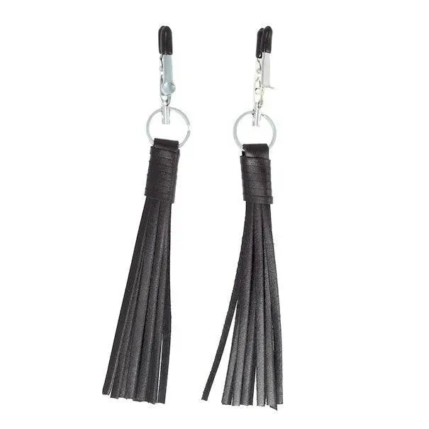 Rimba Adjustable Black Tassel Nipple Clamps – Stylish Leather Design for Sensation & Control
