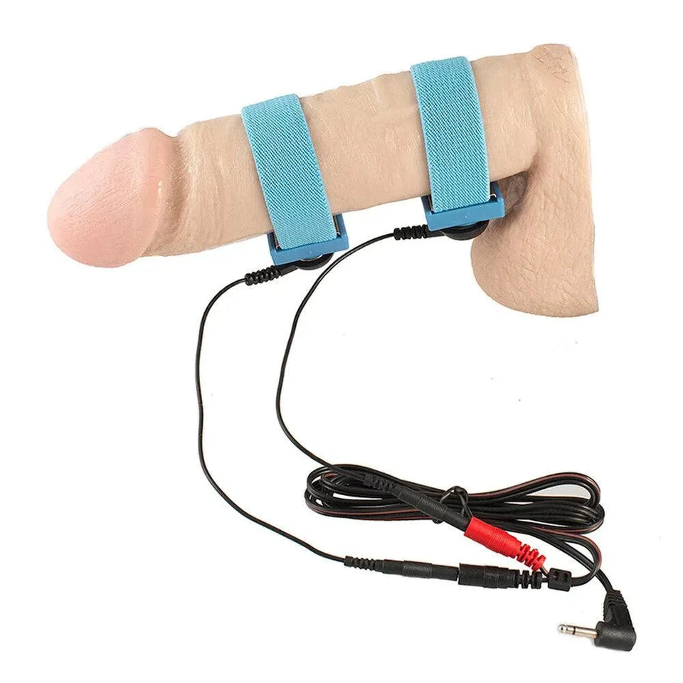 Rimba E-Stim Flexible Penis Straps - Adjustable Blue Straps with Lead Wire for Enhanced Stimulation