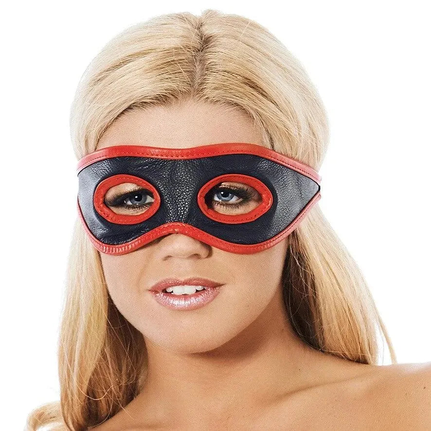 Rimba Red and Black Open Eye Mask - Adjustable Leather Design for Bold Style