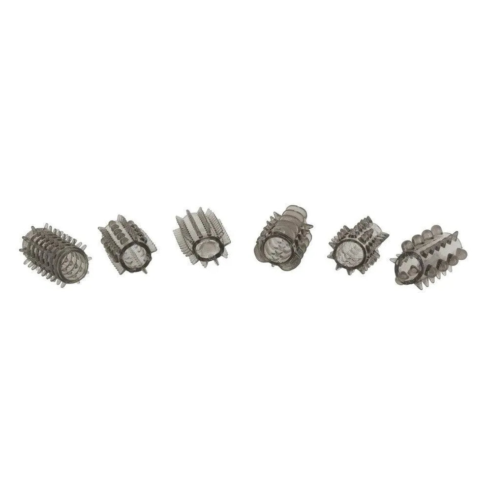 Unlock new sensations with the ToyJoy Power Penis Sleeve Set, featuring six uniquely textured sleeves designed to take your experiences to the next level. Each sleeve is crafted from soft, stretchy jelly material in a sleek grey colour, providing both strength and comfort during use. This set is ideal for those looking to add an exciting twist to penetration play or enhance their solo sessions.